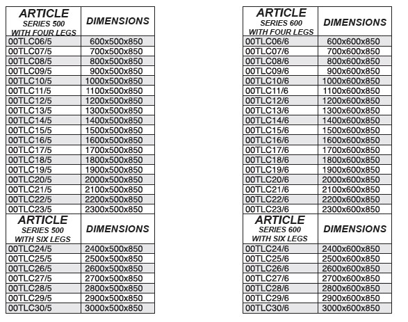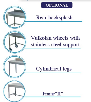 STAINLESS STEEL TABLES ON LEGS WITH LOWER FRAME